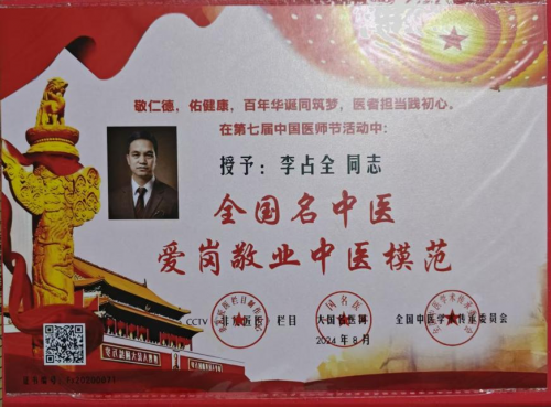 除火激红斑外,李占全在痤疮、湿疹、带状疱疹、银屑病等常见皮肤病诊疗中,同样积累了丰富经验。曾有一位年轻女孩因面部严重斑块四处求医无果,抱着试试看的心态找到他。李占全通过把脉辨证,判断其病症与内分泌失调、肝郁气滞相关,为其定制了疏肝理气、活血化瘀的中药方案。仅两个月后,女孩面部斑块便彻底消失,重拾自信。这样的案例在他的从医经历中不胜枚举——针对痤疮患者,他注重调节脾胃湿热;治疗湿疹则侧重健脾祛湿、祛风止痒;面对带状疱疹引发的剧烈疼痛,他用中药外敷结合针灸快速缓解症状,减少后遗症风险。 行医多年,李占全始终秉持“患者至上”的理念。他坚持用道地药材保证疗效,对经济困难的患者时常减免费用;接诊时耐心细致,用通俗的语言向患者讲解病情,传授日常护肤与健康管理知识。即便如今已年过花甲,他仍坚持每日研读中医经典,不断优化诊疗方案,将传统经方与现代皮肤护理理念相结合,让中医疗法在皮肤病诊疗中焕发新活力。